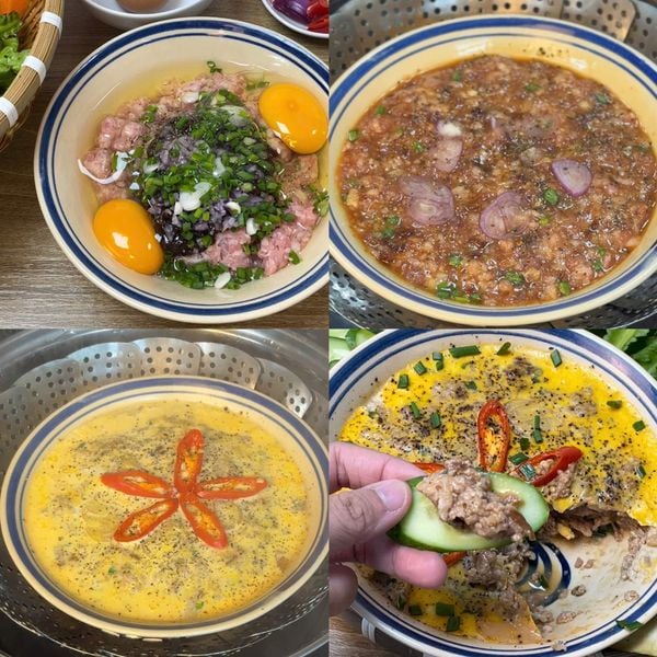 Nếu thích vị béo, có thể trộn thêm ít tóp mỡ hoặc trứng gà vào cùng thịt trước khi chưng.